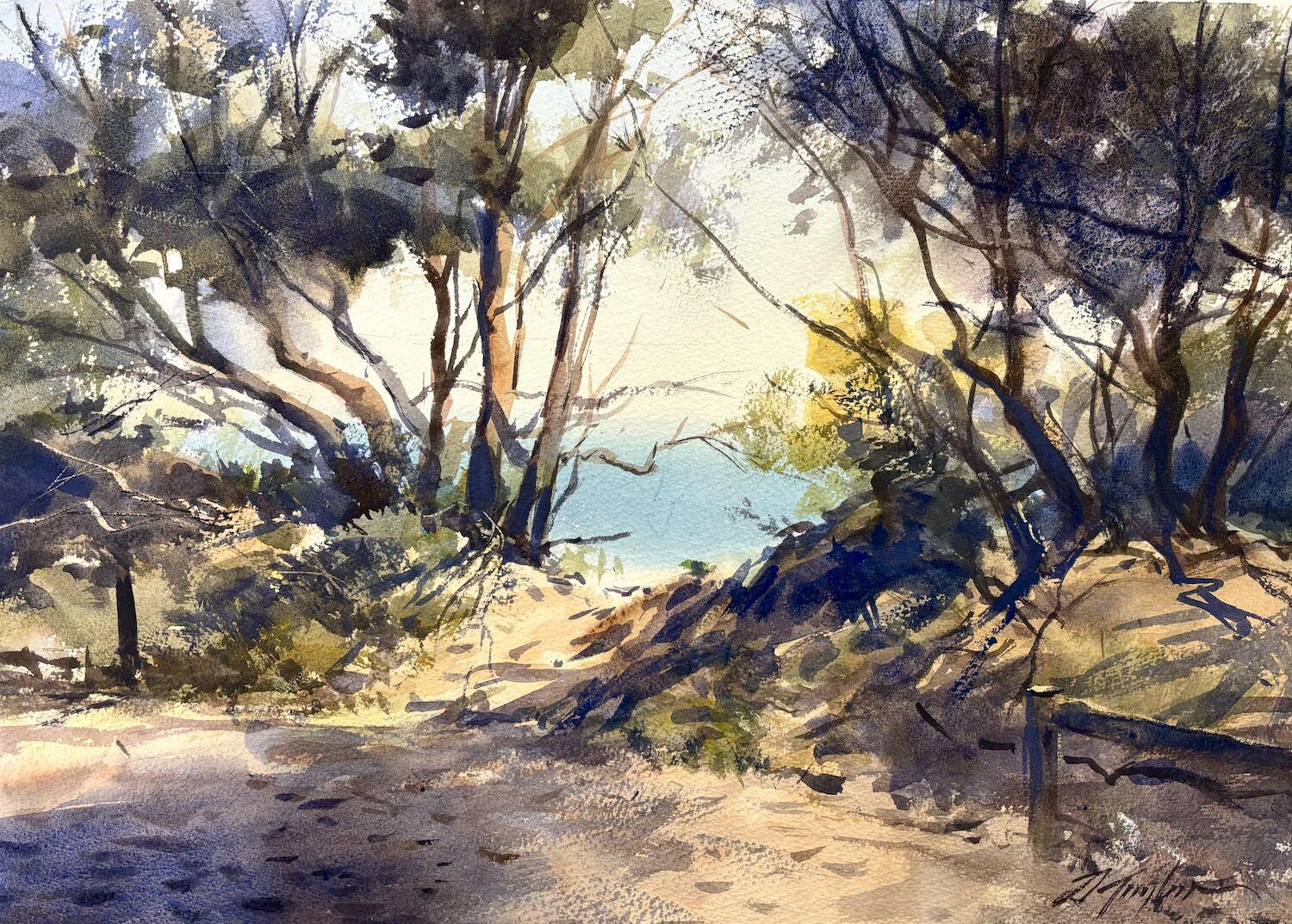 David’s work is regularly exhibited in Australia, China, the United States, in England, the Channel Islands and Stockholm. He has held regular one-man exhibitions of his work since 1975. In each Exhibition he expresses his love of working freely on location and his love of spontaneity, shape, light and colour. There have been many varying influences on his painting journey and aspires to the impressionists Monet, Turner, and the expressive John Singer Sergeant, also to include Winslow Homer, Brabazon Brabazon and Whistler to name a few.